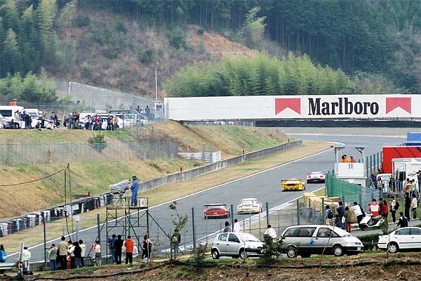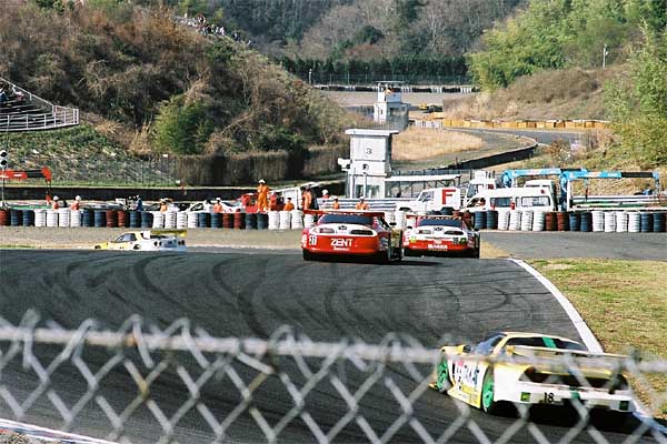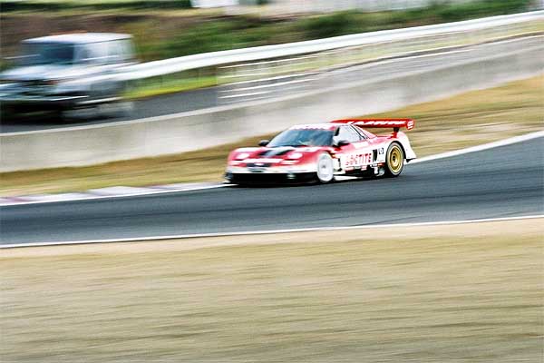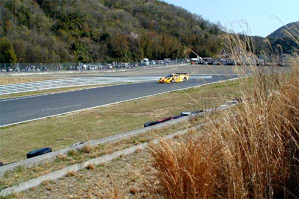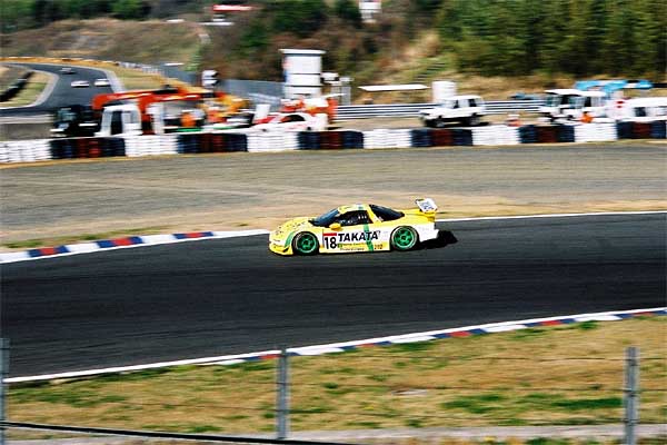 TAKATA/NSXはインにつけなかったようです。左上にはウイリアムズコーナを抜けていくマシンが見えます。