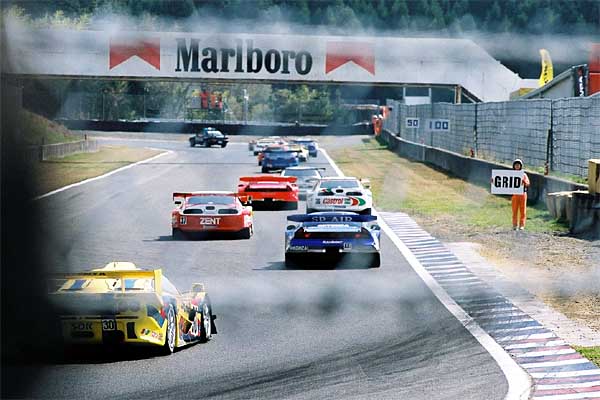 パドックパスがあるとコースの内側から撮れるのです。まさに今オープニングラップが始まろうとしているところ。