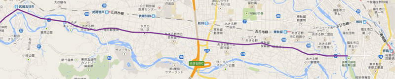 私の川サイクリングポリシーは上流へは左岸、下流へは右岸である。それは左側通行を考えたときに川のそばを走れるからである。さて、秋川の場合山に近いこともあって、川が豪勢にクネクネしており、原始の川を思い起こさせるのだ。シベリア上級から見た川と言ったら言い過ぎかもしれないが。このクネクネに対応して川のそばを無理やり走るっていうのも、自分ルールを忠実に守る感が発揮されて、なんだか一人満足をすることが出来る。