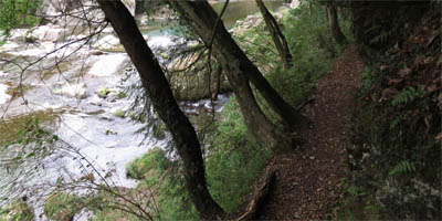 上流に行くときの左岸スタートを「道として成立している一番河口側」とした。右岸ゴールは滝の山公園の北側進入口とした。