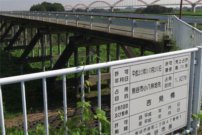 サイクリングロードからは2度横断歩道を渡らないと川下に行けない。そして渡ったところで熊谷側を見たところ。もう橋を途中まで渡ってみるなんてのんきなことはいってられない。時間が押しているのだ。