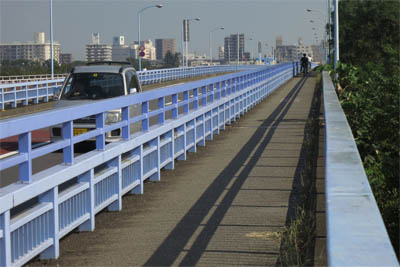 大芦橋到着。橋の下をくぐる道は無いので、車の往来が途切れたら注意して渡るべし。