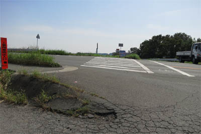 そして右折したところ。先に土手が見える。