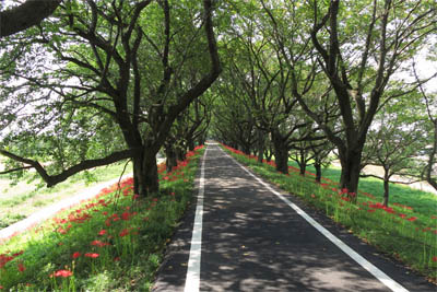 この区間は結構変化に富んでいて面白い。さくら並木の木陰を走るのは最高に気持ちよいし、彼岸花の群生も絵になるのであった。