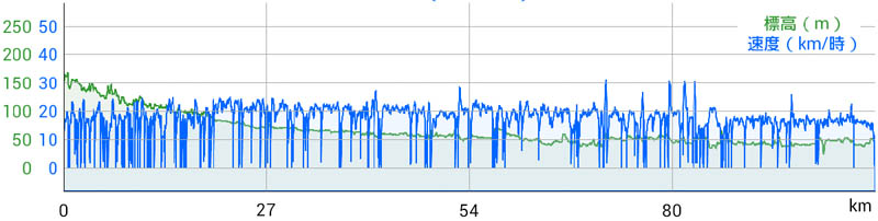 -前半(サイクリングロードに入る前の街中)は少しゆっくり走り、かつ止まっている(写真撮影)が多い