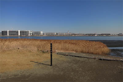 地図で見ると右岸は河口近くのヨドバシ倉庫裏までいけることになっている。本当にいけるのか?もしやもっと先までいけるのか?こういう分からないところのワクワク感がたまらない。そしてたどり着いた河口行き止まりはただなんにもない「ただの行き止まり」であるが、対岸に見える羽田空港をぼんやり見ているのが良い。A滑走路に頻繁に着陸する飛行機をみるのも良いぞ。
