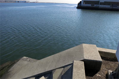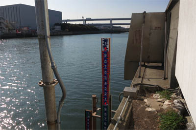 ぎりぎりポイントから運河側を見る。潮位スケールがあった。