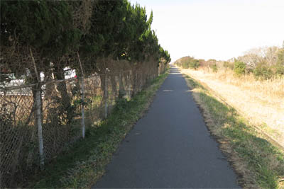 土手レベルが上がると、幅も広がり路面もよくなる。この広さと路面が続くなら最高のサイクリングロードなのだが・・・