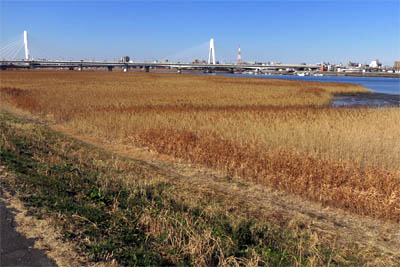 ここから大師橋までは快適なサイクリングロードである。大量の「葦」を見ながら快適走行だ。