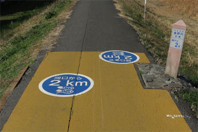 直ぐ1kmのマークがあった。自転車で1kmなんてほんのちょっとである。
