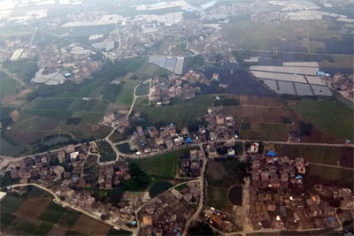 さて九州の沿岸線でスゲースゲーと言いながらシャッターを押しまくってからわずか1時間、広州の上空に来た。広州ってすごく近いぞ。飛行機の楽しみはなんてったって空から地図そのものの街や山を見下ろすことである。最近はネット予約時に座席まで指定できてべリーグーである。昔は「窓際でお願いします」とチェックインしても、実際は翼の真上で結局何も見えなかったりすることも多かった。