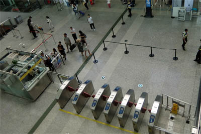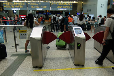 ◆上部のチェックインフロアに行くと吹き抜けなので改札が良く見える。
