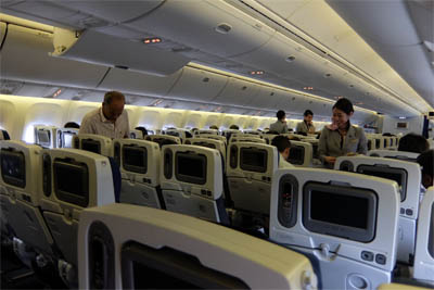 ◆帰りは1/3くらいの搭乗率って感じ。最近乗るアジア向け飛行機はほぼ100%ってことが多いので、余裕度はちょっと驚きだった。