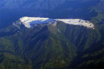 ◆四国上空を飛行していたら、何やら緑の山の中に真っ白いエリアが見つかった。後で調べたら、石灰岩採掘場なようだ。