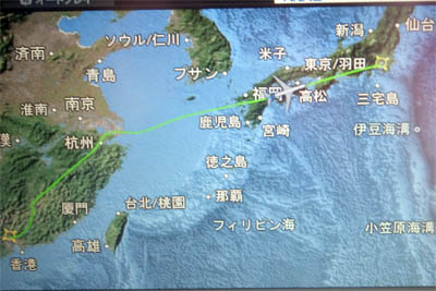 ◆地図大好きである。なので飛行機の中は大体地図表示にしている。映画を見ることはほとんどない。これを見ると、中国陸地1/3、海1/3、日本陸地1/3って感じだな。