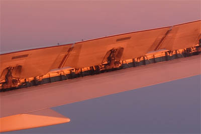 ◆着陸態勢に入るためにフラップの確認。内臓を見ているようで生々しいぞ。
