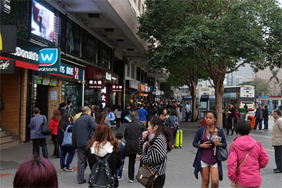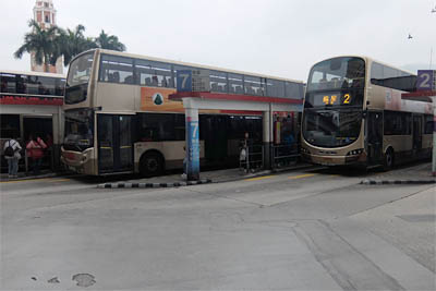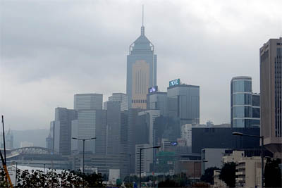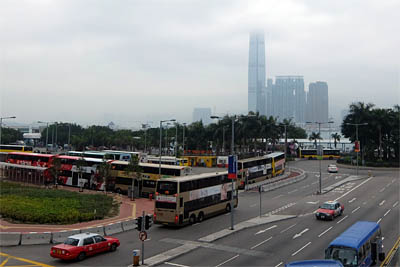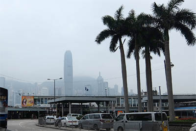 ◆この辺りから観光地っぽくなってくる。まず2階建てバスが多い。奥に見えるのが最初に降りた駅「九龍」である。やはり上層階が雲に隠れているね。