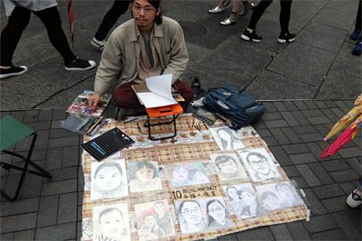 ◆観光地にはよくいる似顔絵描き君。ロンドンの似顔絵君の方が上手かったような気がするが、それは被写体が欧米人だったからかも。