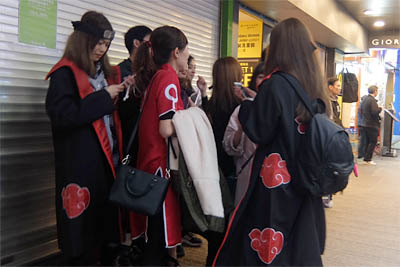 ◆何やらへんてこな集団を発見。同行者が「あれナルトのコスプレですよ!」と教えてくれた。言われなきゃ分からんぞ。