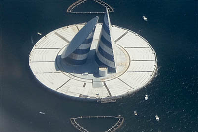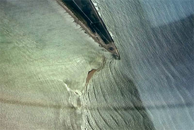 ◆先端の部分を空から見ると、潮の流れが岬の形状で変わっているのが良く分かる。この絵はいい!