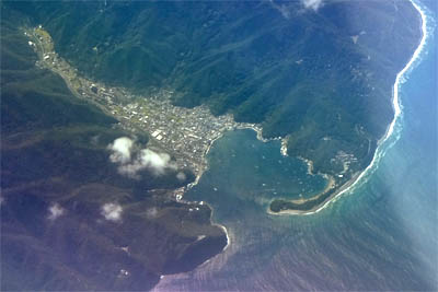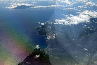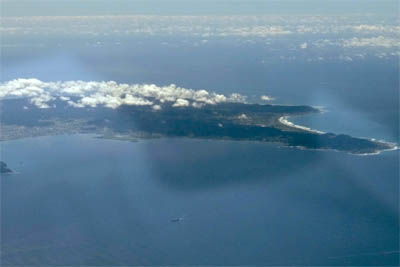 ◆相模湾をまたいで伊豆に上陸。左上には大島が見える。