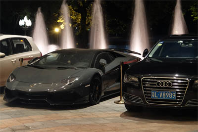 ◆エントランスにはランボルギーニが停まっている。ランボルギーニとは「おぬしできるな!」と言いたくなるね。