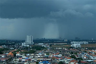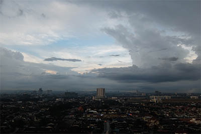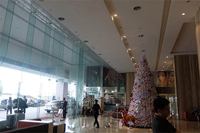 シンガポールからは1時間弱のフライトであるが、暗くなった眼下に見える雲の中から稲光がピカピカ光っていたのが印象的であった。