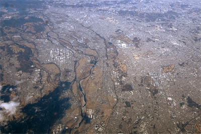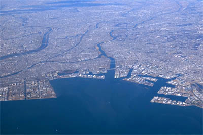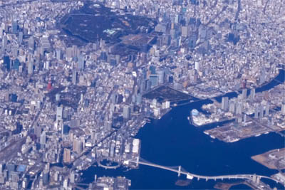 海に面していない成田は、飛んだあと大きく旋回したりするもんだから、旋回イン側の窓から見える景色が打ネミックで萌える。さらに東京湾上空と飛ぶもんだから、ベイエリアがばっちり見えて萌える。さらに自宅近辺が良く見えるのでまた萌える。