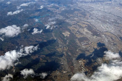 ◆相模川を越えるとすぐに山エリアになるのだ。左上側に最近(自分の中では最近なのだよ)作った「宮ケ瀬湖」が見える。
