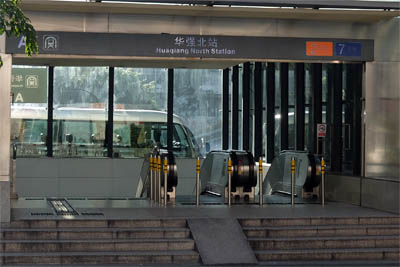◆ホテルの目の前が華強北駅出口だ。7時半だけどまだ人はいない。。