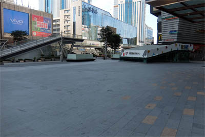 ◆ホテル建物前広場だけど、まだまだ人がいない。深センの朝は遅い。