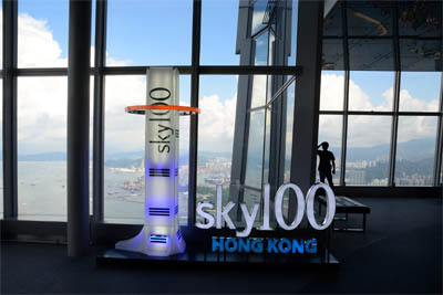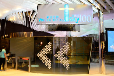◆高層ビルの根本を添うように歩く。しかしSky100に行くための建物への入口がなかなか見つからず、真夏の香港で汗をかいた。