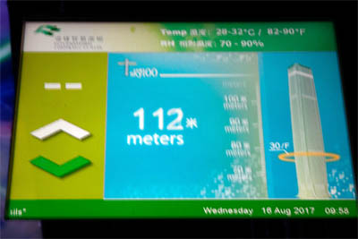 ◆100階まで60秒でついてしまう。早いね。今は30階を通過中、112mですと。
