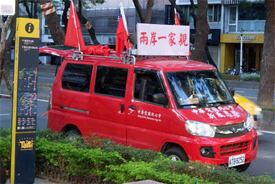 ◆まず真っ赤なのと、中国国旗を掲げている。日本でいう右翼か・・・