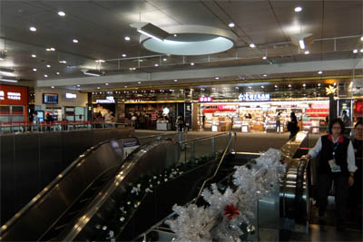 ◆右に曲がってターミナルのゲートに向かう。が、免税店が少しだけだしどこもガラガラ。