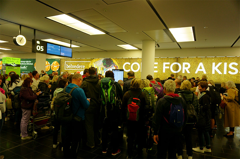 空港からウイーン中央駅までが30分ほどなので、なんだかんだ言って2時間半くらいとればよいだろう。なので、フライト1時間遅れるとちょっと緊張するのである。