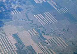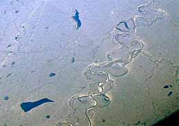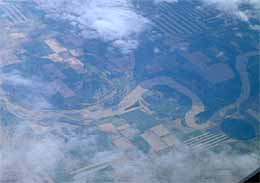 | さて飛び始めて3時間も経つとなにやらいい感じに曲がっている川が見えてきました。事前の川はこうでなくっちゃ! | さながら畑の中の毛細血管ですね | おお、これこそシベリアで見た川だ! |