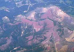 | そんな原始林系の中にも民家っていうか人はすんでいるのですね(下)。 | うへ〜、今度こそ小さな池が転々と・・・と思ったのですが、やっぱり雲の影でしたとさ。 | なにやら赤い肌の山発見。 |