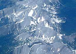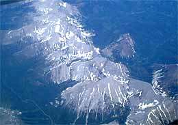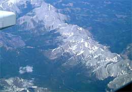 | 3時間半飛んで、カナダ北部の未開?地区に突入しかけているようです。夏だけど雪発見! | でも山脈っていうよりも | ただの山並みって感じかもしれませんねぇ |