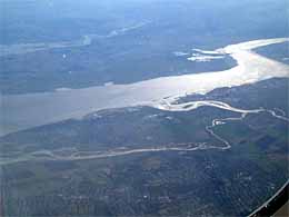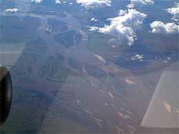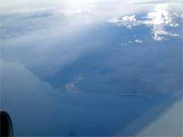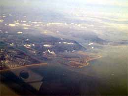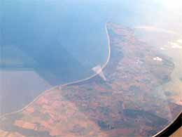 | ヨーロッパに入りました。 | オランダ地区です。地表が海に侵食されている感じが、空から見るとよく分かるのです。 | さあ、イングランドに突入です。ここはテムズ川の河口なのです。 |