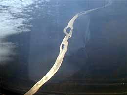 | アラスカの大地です。前回の冬の景色とは全く違って平原って感じです。 | なんとなくカワセミがいそうで、おもわず飛び降りたくなりますねぇ。 | 太陽が南側なので、反射するんです。 |