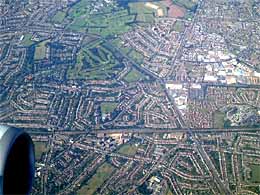 | スカパーのロンドン特集で「ドイツ軍はロンドン空襲は月夜に光るテムズ川を頼りに飛んできた」って言ってましたが、よく分かりますねぇ。 | ロンドンもちょっと離れるとこんな感じの農業国っぽいのです。 | いつ見ても家の並びが日本と違いますね。 |