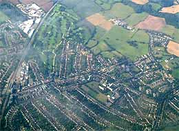 | 左側の滑走路より飛び立ちました。右側のは着陸用かな? | 相変わらずのロンドン住宅密集地。 | 家の並びがいかにもロンドンなのです。何度も見ると分かるのですね。 |
