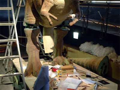 【228】下を見ると、なんと製作中です。普通こういうのって、どこか造形会社が造って持ってくるんだと思ってましたが、博物館の中で作っていて、それを見れちゃうとは・・・。