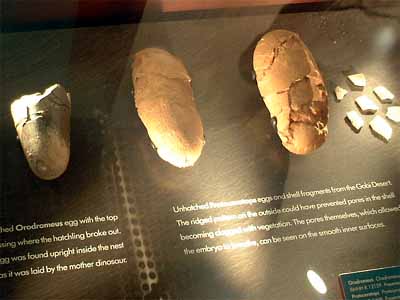 【238】実際に博物館にいるときはゆっくり英語を読んでいる時間なんてないので、今はじめて読みました。左の卵は割れているものだそうです(割れているのを”Hatch"って言うんですね)。右の割れていないのはゴビ砂漠で見つけたそうです。