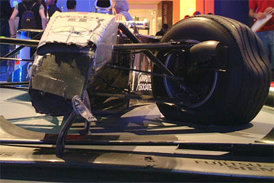 クラッシュしたマシンなんてそうそう見る機会はありません。それをそのまんまなんてまず見られることはないですね。それをこんなに近くで。展示を許可したマクラーレン、ロンはすごいです。