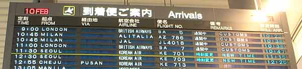 しかし無事チケットをゲットできた俺たちに待っていたのは、土曜から遊びに行くのはどうかは知らないが、超大渋滞なチェックインカウンターであった。われらを母国日本国に運んでくれるはずのBA便は11:30のフライト予定であるが、10時になってもモニタに映し出されるBAは”Wait”の表示。いくらたってもWaitなんで、これまたT君その辺の職員に聞いて”多分この列に並んでればOKだろう”と教えてもらい、その列に並んだらビンゴ。しかし列は1時間弱続いたが、無事チェックインできたのであった。
