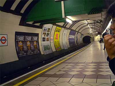 | 【#219】 疲れていたので、短辺だけでギブアップしました。ここはマーブル・アーチです。道路を地下道で越えるのですが、近くにいた中東人が・・・ | 【#220】 やっとたどり着けた地下鉄駅。地下鉄のことをチューブと言うのがよく分かる、いわゆる新幹線500系っぽい円筒形です。 |