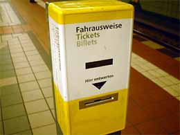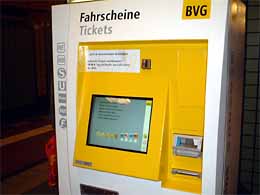 | 【#471】ちょっとリッチに会社から駅までタクシーを呼んでましたが(自費です)、来るのはメルセデスです。やっぱドイツだもんね。 | 【#472】そして地下鉄やら国鉄やらの券売機はこんなものです。各国語で説明がでる優れものです。BVGっていうのはいつも下着を思い出しちゃうんですね。 | 【#473】買った切符をここでタイムスタンプします。時間制限があるんです。でもその時間内ならどこまでもいけるのです。面白いよね。) |