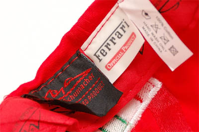 ◆そして帽子の内側にもこんなのが印刷してあります。凝ってるなぁ。これってシューマッハマークなのね。